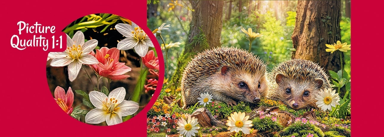 Dive into a world of tranquility and creativity with the Cherry Pazzi 500-Piece Puzzle Cute Visitors! This enchanting puzzle combines adorable hedgehogs with beautiful colors and details, making it a joy to puzzle over and over again.
