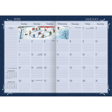 Plan your year in style with the Folk Art Pocket Agenda 2026 , featuring beautiful illustrations by beloved folk artist Mary Singleton . This compact and elegant planner offers a clear monthly overview across two pages , making it easy to keep track of all your appointments, notes, and to-dos.