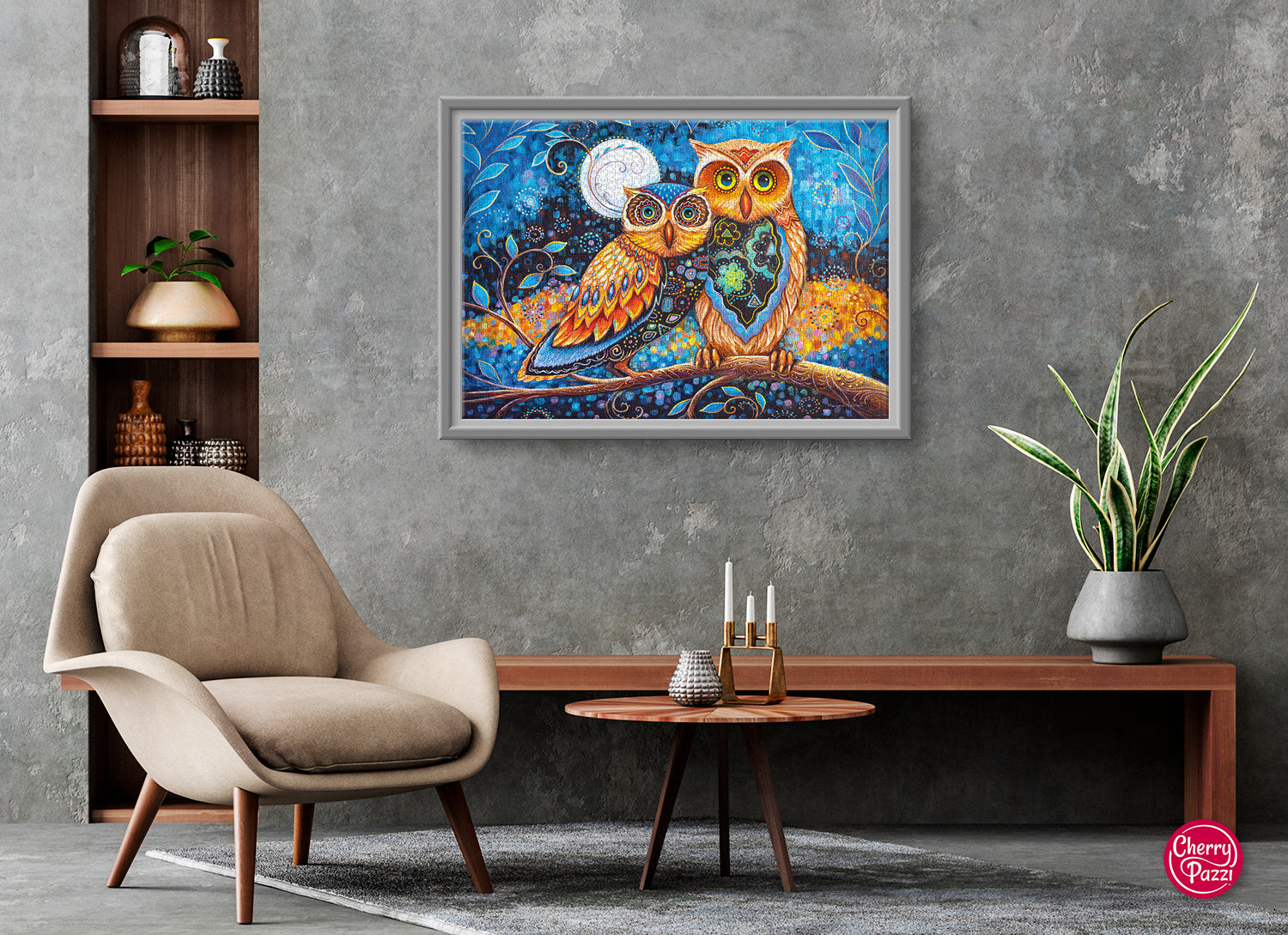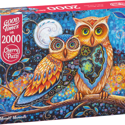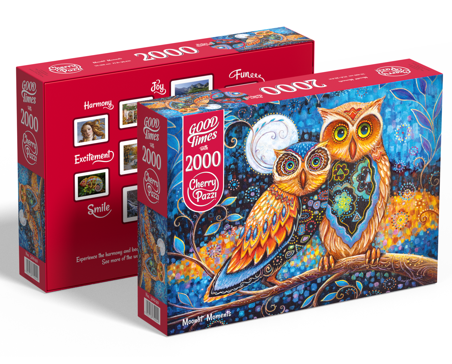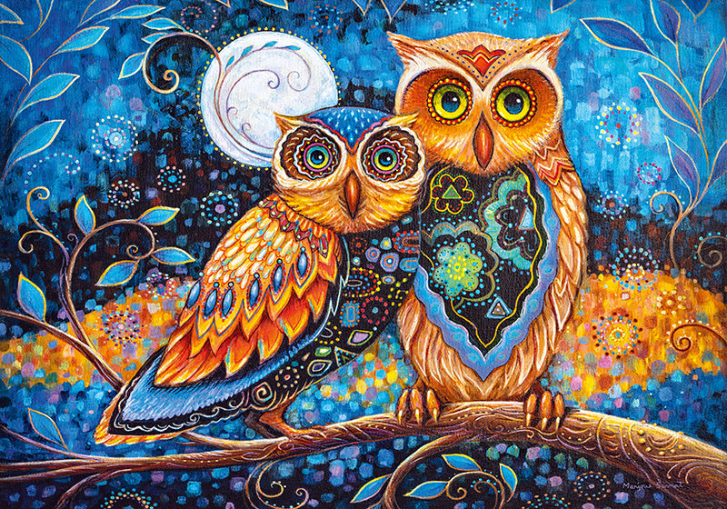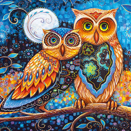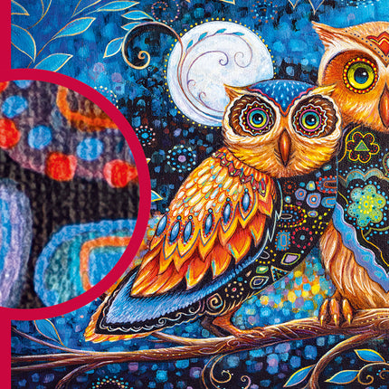 Moonlit Moments - A rich and imaginative owl pattern with unusual mosaic ornaments. The style of this puzzle is highly detailed and imaginative. This image will enchant anyone who loves mythology and the ancient symbolism of owls. These creatures, equipped with night vision, can see more in the dark. This puzzle will provide hours of relaxation, making it a satisfying and enjoyable challenge.