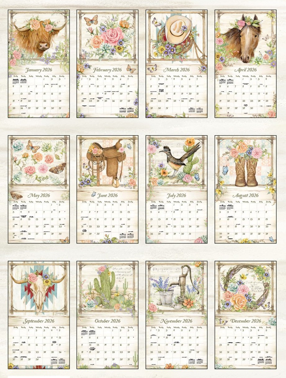 Bring the charm of country life into your home with the Rosewood Ranch Calendar 2026 , beautifully illustrated by renowned artist Susan Winget . This atmospheric 12-month calendar celebrates the rustic beauty of farm life with detailed watercolors of picturesque landscapes, majestic horses, and idyllic farm scenes.