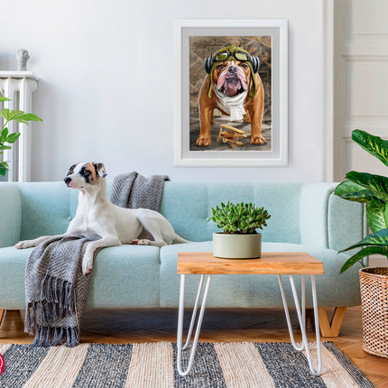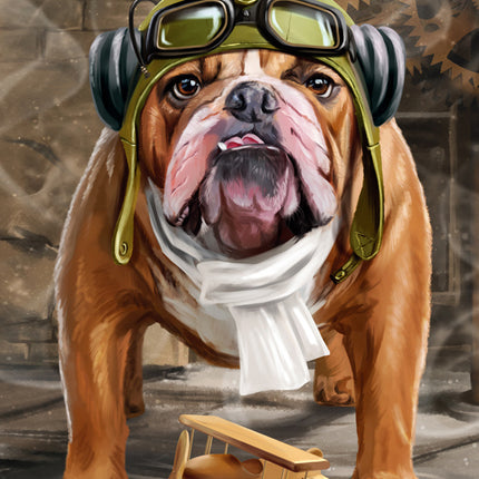 Bulldogs hebben een lange geschiedenis als gezelschapshond vanwege hun liefdevolle, speelse en over het algemeen kalme aard - ze zijn zeker geduldig en grappig. We kleden hem aan in een pilotenkostuum :) en we hebben schattige, grote, brede puppy-hondenogen die vragen om een glimlach :)
