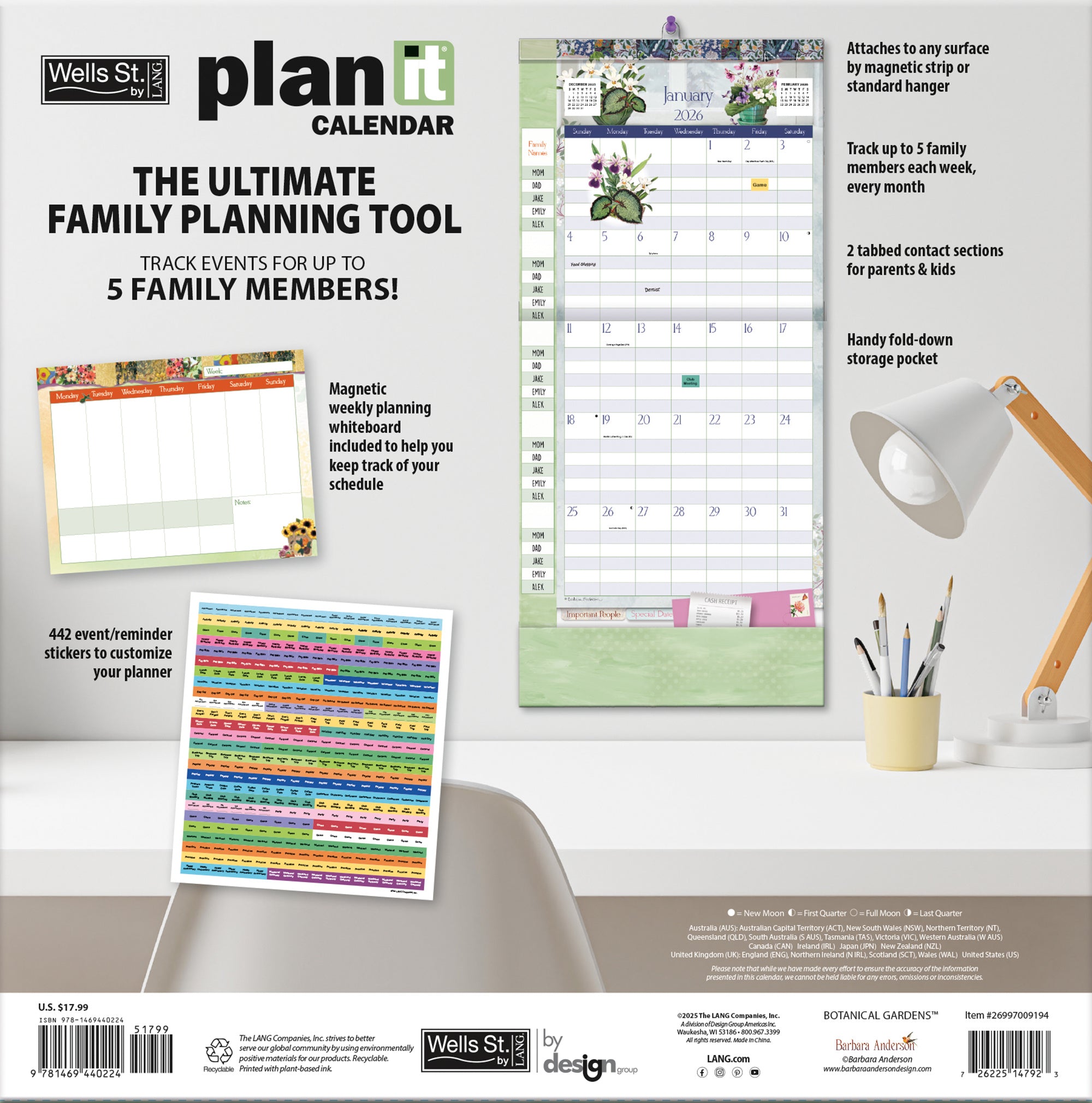 Botanical Gardens Family Plan-It Wall Kalender (August 2025 - December 2026)