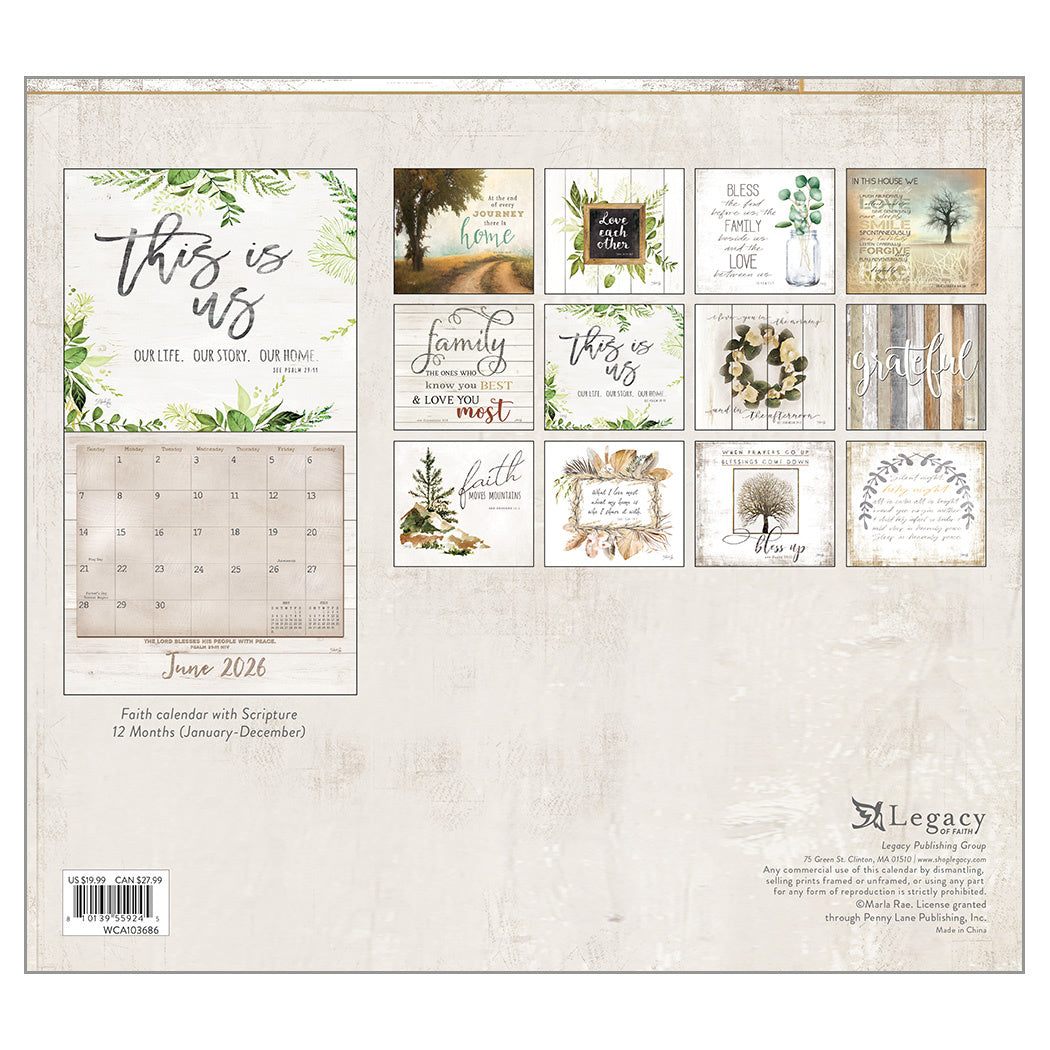 Breng warmte, geloof en liefde in je dagelijks leven met de Faith and Family Kalender 2026 van Legacy. Deze sfeervolle kalender is gedrukt op luxueus papier met een fijne linnenstructuur en siert je muur met het originele, hartverwarmende artwork van kunstenares Marla Rae.