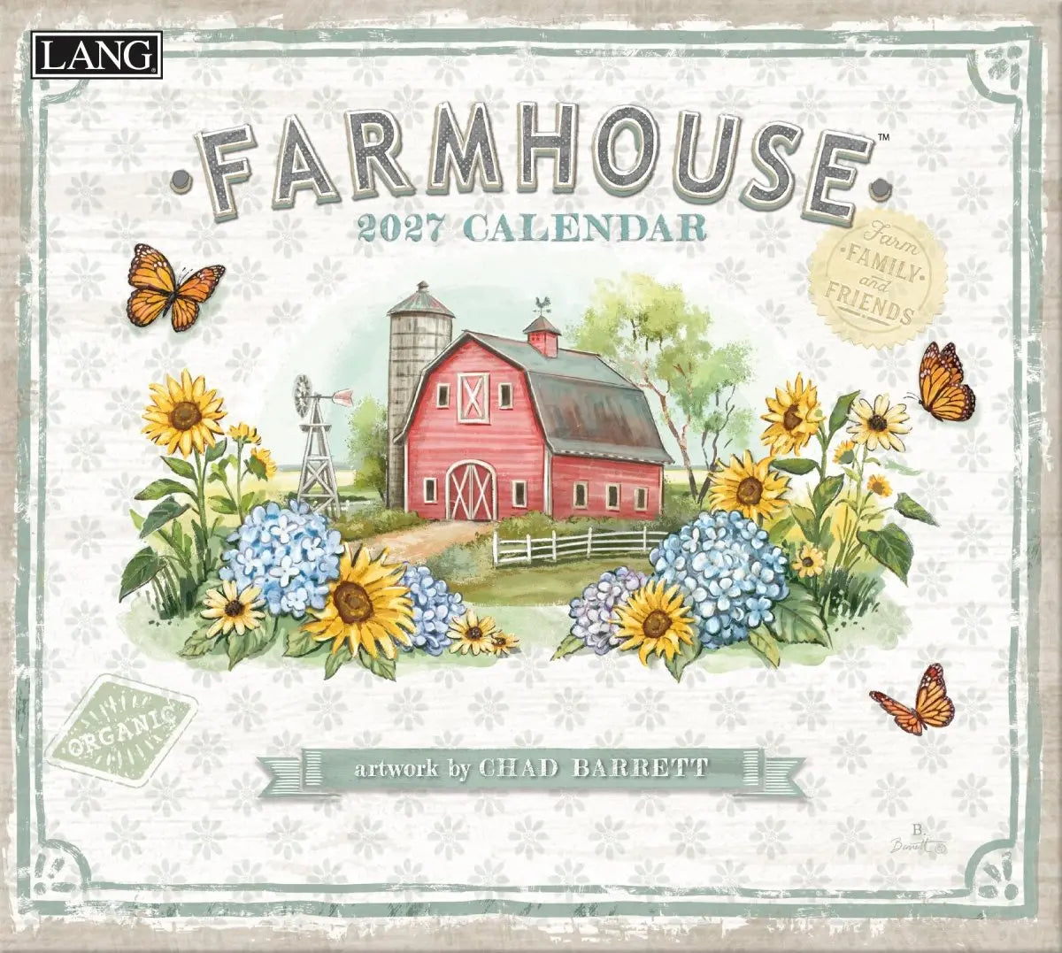 Breng de warme, landelijke sfeer van een boerderij in huis met de Farmhouse Kalender 2027. Deze prachtige kalender biedt 12 maanden vol sfeervolle kunstwerken van de getalenteerde kunstenaar Chad Barrett, gedrukt op hoogwaardig linnen structuur papier.
