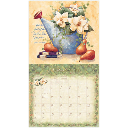 Breng elke maand tot leven met de elegante charme van de Graceful Garden Kalender 2026 van Legacy. Deze sfeervolle kalender is gedrukt op luxe linnenstructuurpapier en bevat originele kunstwerken van de getalenteerde kunstenares Annie LaPoint. Laat je betoveren door haar delicate, botanische illustraties die sereniteit en schoonheid uitstralen.
