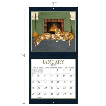 Geniet het hele jaar door van de prachtige kunstwerken van Lowell Herrero met de American Cat Kalender 2026. Deze unieke kalender brengt de speelse en eigenzinnige aard van katten tot leven op hoogwaardig linnenstructuur papier, wat zorgt voor een luxe uitstraling.