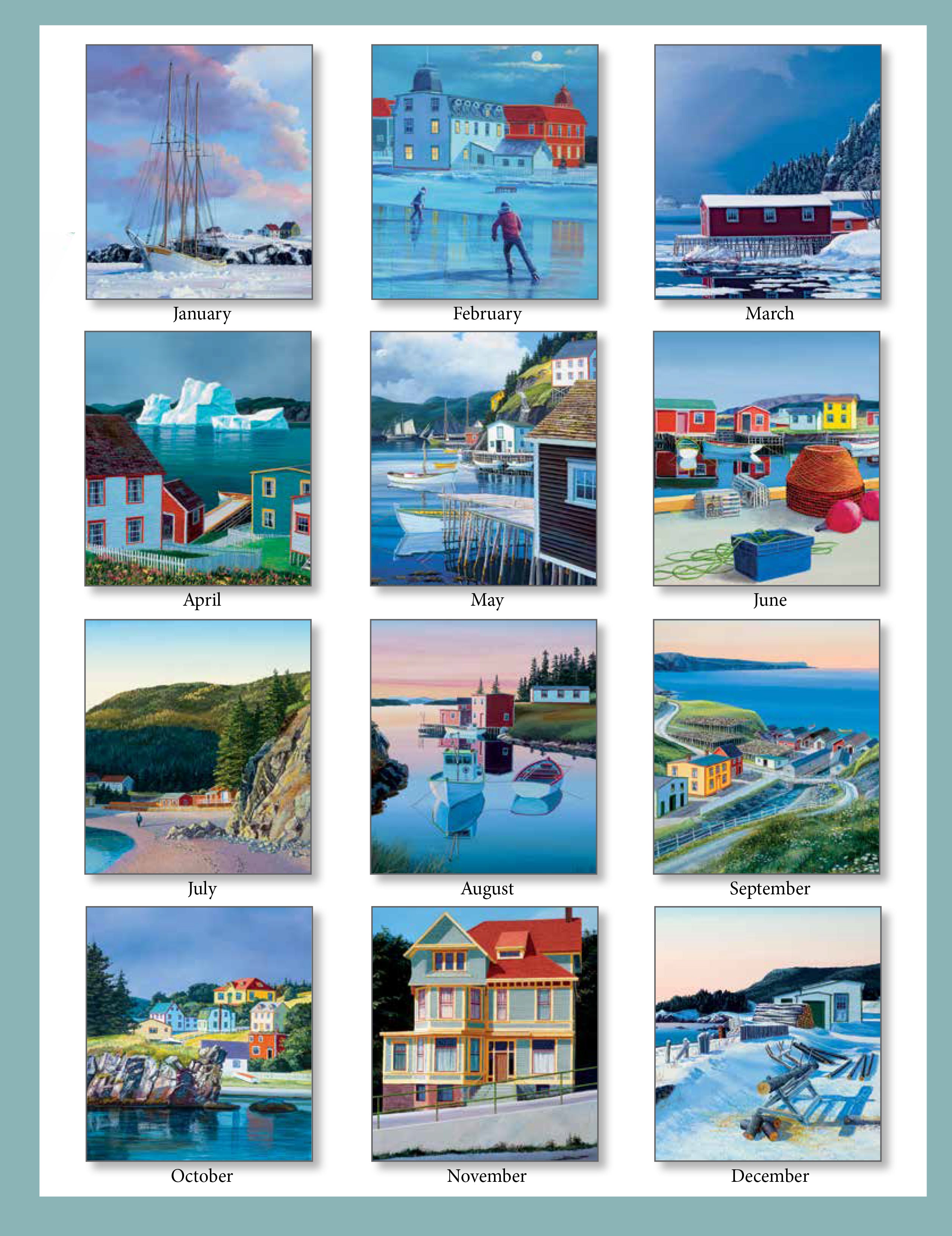 De Newfoundland Kalender past prachtig in een woonkamer, hal, kantoor of vakantiehuis – overal waar je een stukje Atlantische charme wilt ophangen. De karakteristieke stijl van Ed Roche brengt rust, kleur en identiteit aan elke muur.