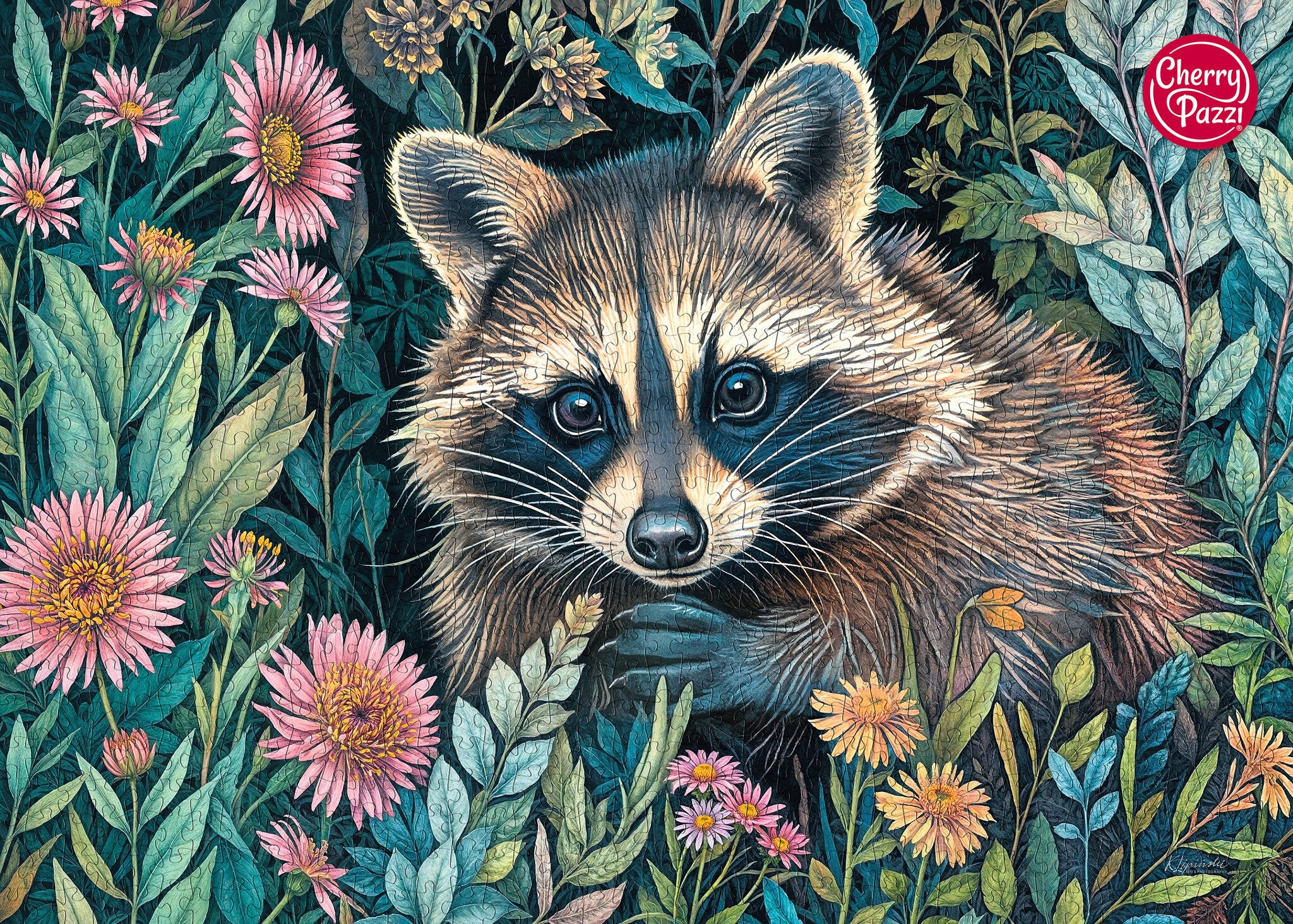 Cherry Pazzi Puzzel 1000 Stukjes – Raccoon in Flowers