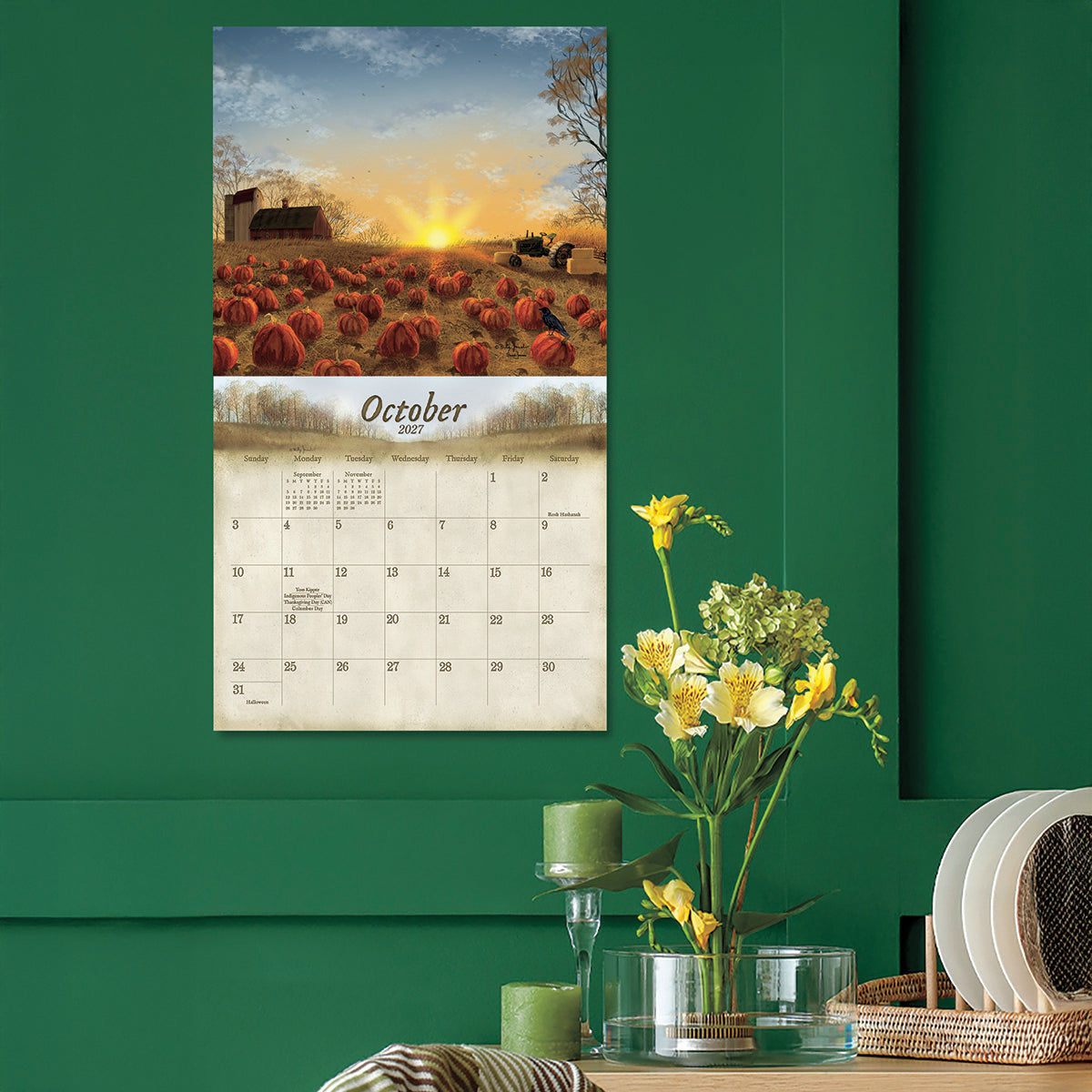Gedrukt op luxueus linnenstructuur papier, straalt deze kalender kwaliteit en verfijning uit. Iedere maand toont een grote, gedetailleerde afbeelding van het Amerikaanse platteland, met daaronder een overzichtelijke maandindeling met ruimte voor notities, verjaardagen en afspraken.