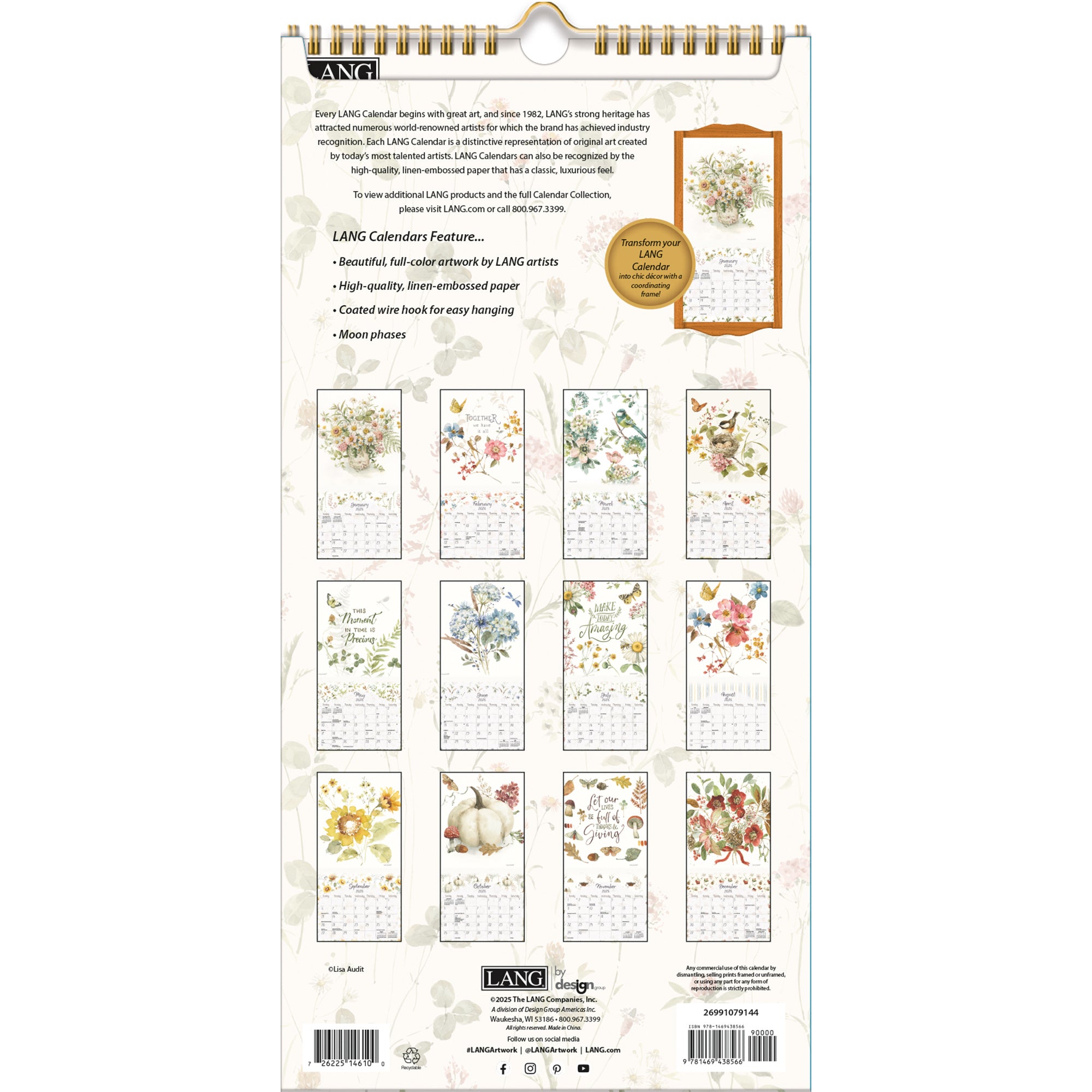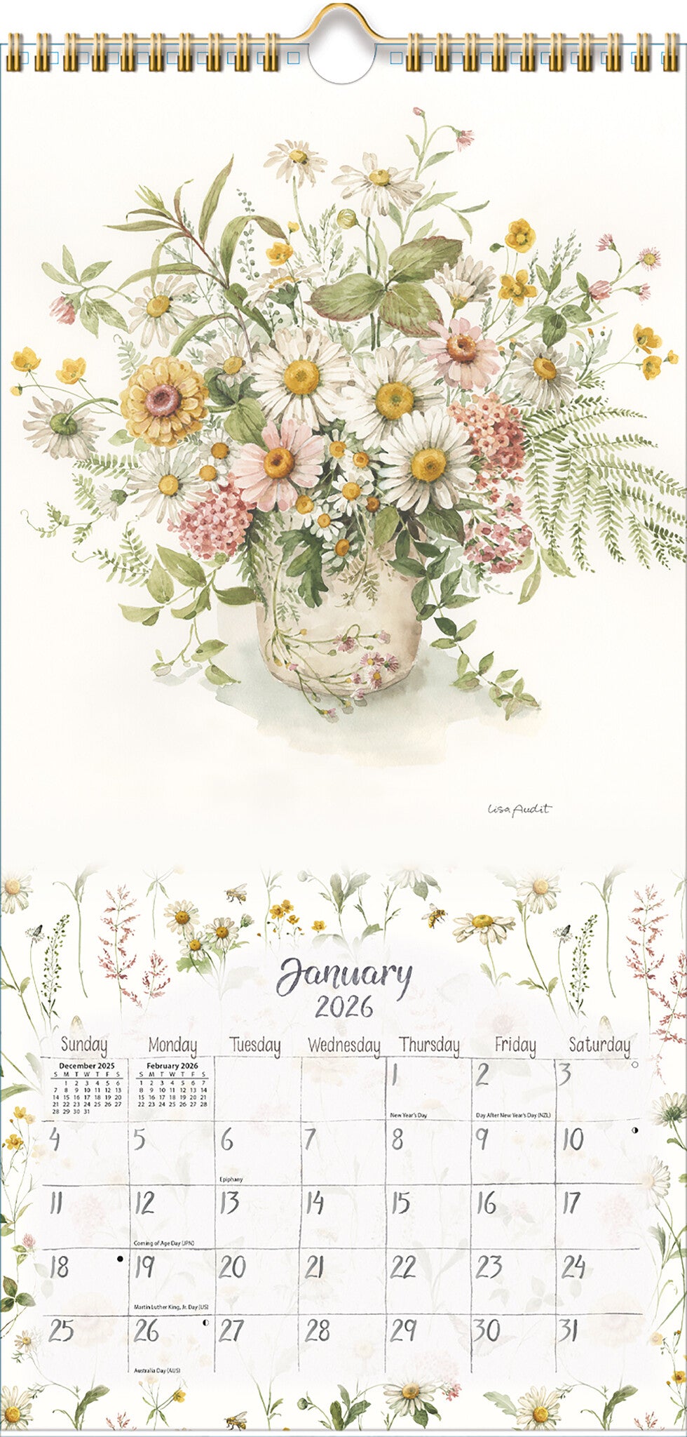 Breng het jaar 2026 in stijl door met de Watercolor Seasons Kalender. Deze prachtige jaarkalender, ontworpen met de verfijnde en rustgevende aquarelkunst van Lisa Audit, is een ware blikvanger in elk interieur.