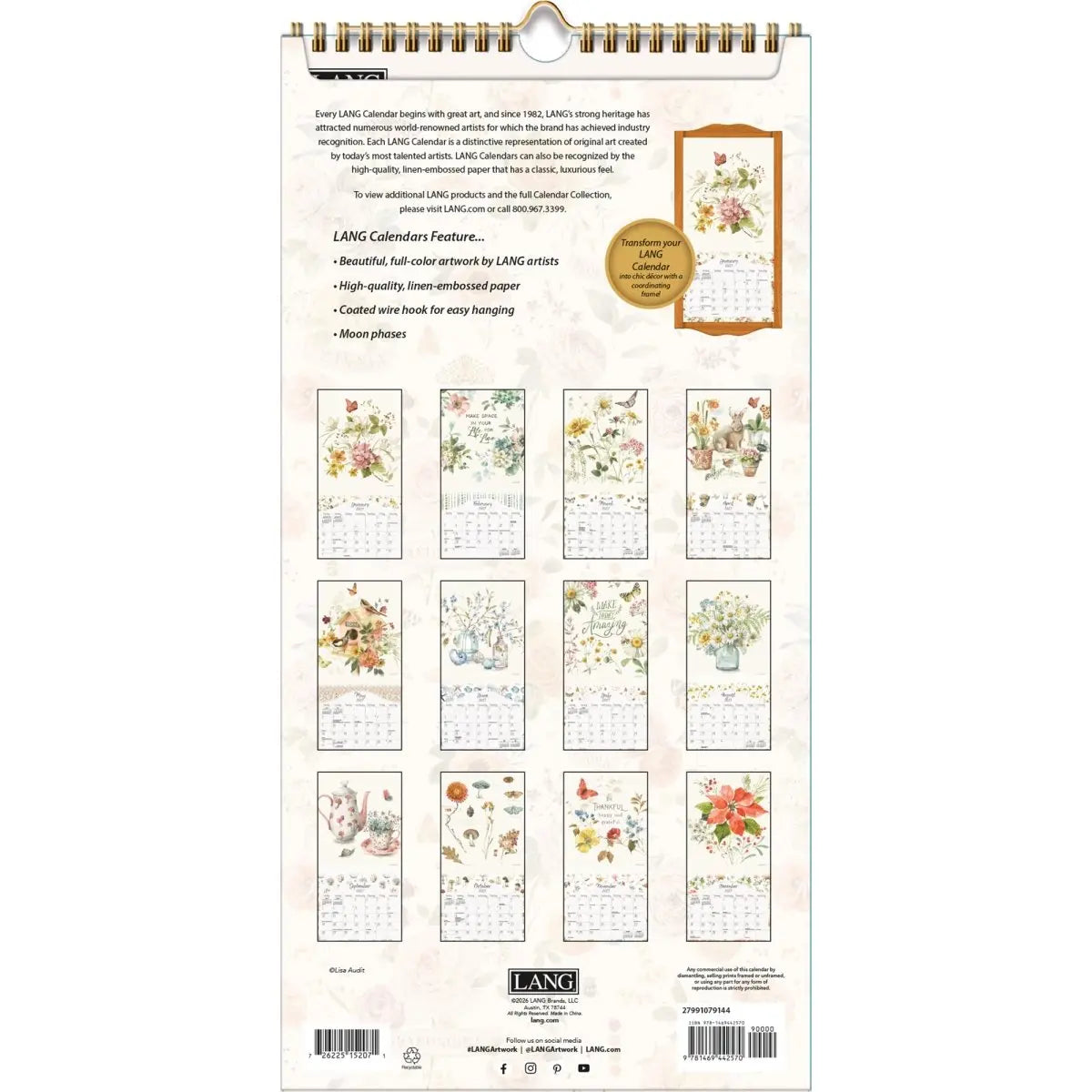 Breng het jaar 2027 in stijl door met de Watercolor Seasons Kalender. Deze prachtige jaarkalender, ontworpen met de verfijnde en rustgevende aquarelkunst van Lisa Audit, is een ware blikvanger in elk interieur.