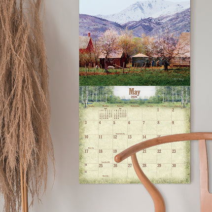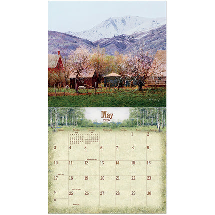 De kalender begint in januari 2026 en loopt door tot en met december 2026, met elke maand een grote, sfeervolle afbeelding bovenaan en daaronder een overzichtelijke maandindeling met ruimte voor persoonlijke notities, afspraken en verjaardagen.